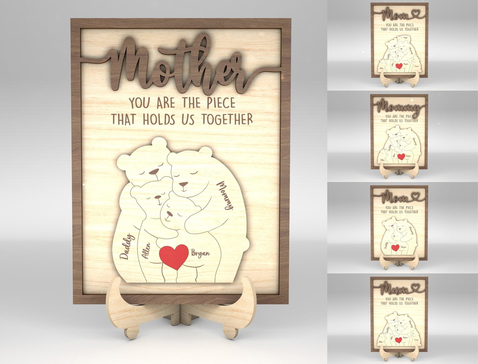 Capture the warmth of your family in a beautiful and customizable digital design with our Personalized Family Puzzle Sign SVG Bear. This downloadable SVG file is ideal for Cricut, Silhouette, and other cutting machines. Whether you’re creating a heartfelt gift, wall décor, or a keepsake sign, this puzzle-style bear layout lets you add individual names, making each piece of the bear represent a beloved family member. Perfect for Mother’s Day, Father’s Day, housewarming gifts, or just because—you’ll be turning pixels into precious memories in minutes.