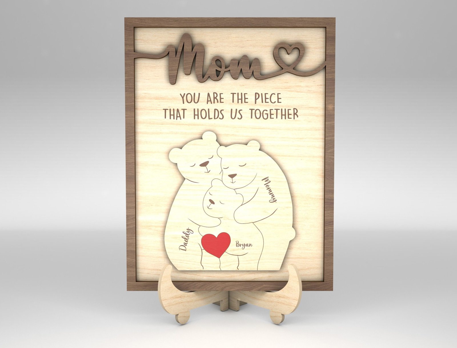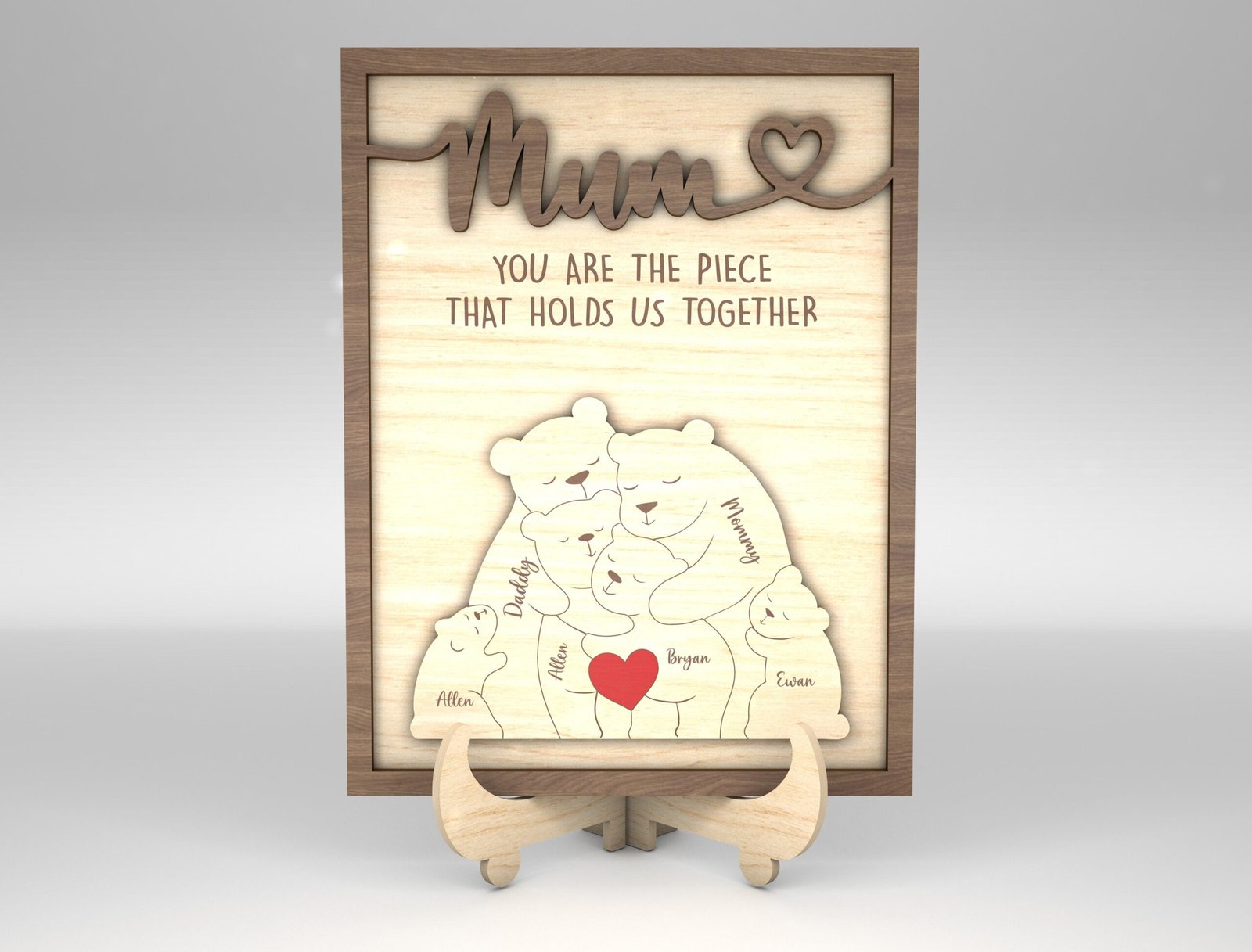 • Create a personalized wooden sign with the puzzle bear featuring each family member’s name.